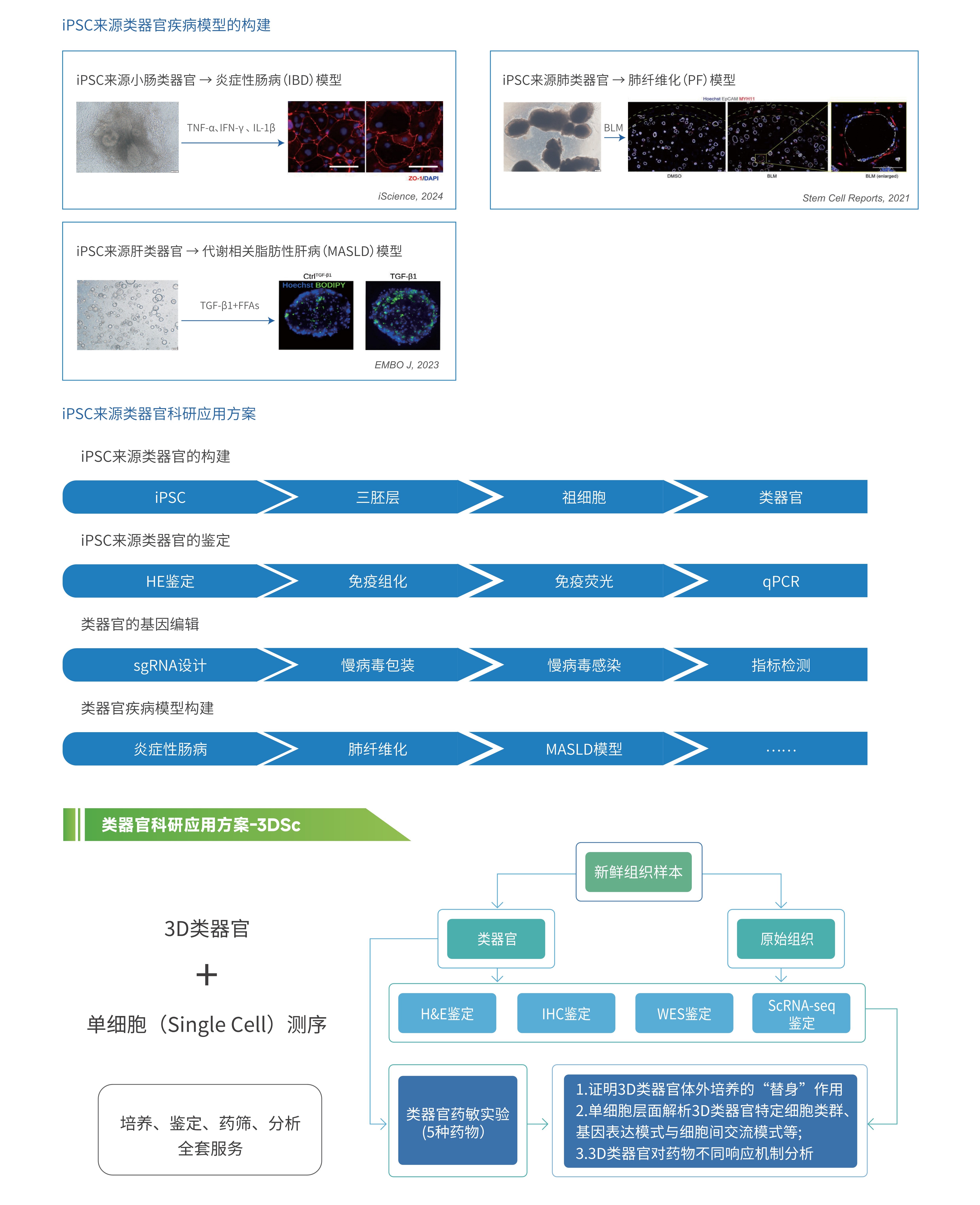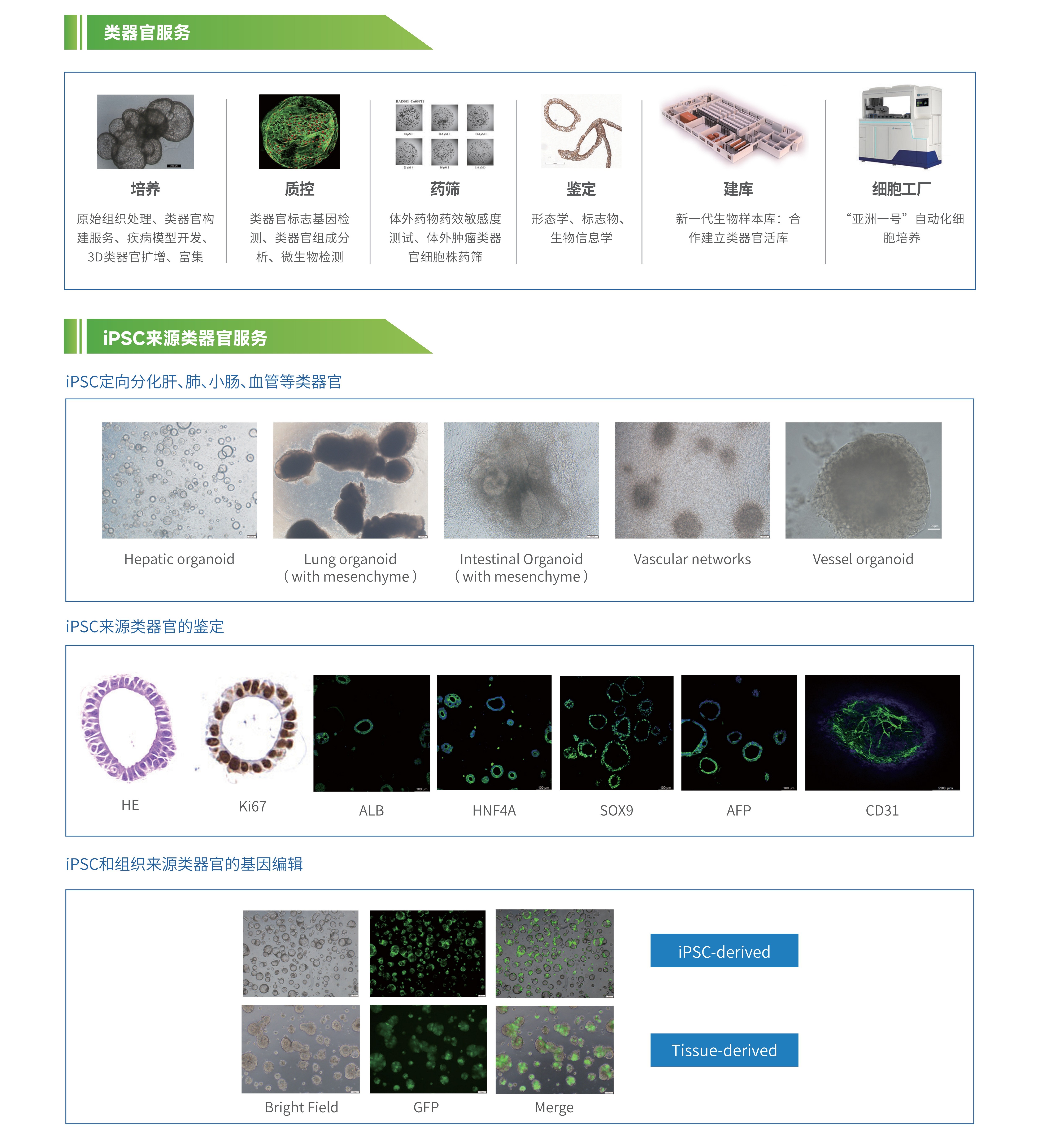 中心(公司)依托 CellXpress.ai 一系列技术平台的先进能力,形成涵盖类器官培养、建库、表征、功能检测到器官芯片共培养等系统化服务,并配套自主研发的基质胶、培养基、试剂盒等产品,提供类器官及器官芯片创新解决方案,助力研究成果加速走向产业转化。